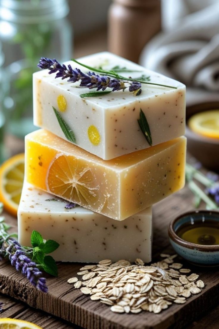 สบู่น้ำมันธรรมชาติแฮนด์เมด ตกแต่งด้วยเมล็ดและดอกไม้แห้ง 3 สูตร (ข้าวโอ๊ต ขมิ้น ดอกไม้) บำรุงผิวให้ชุ่มชื้น